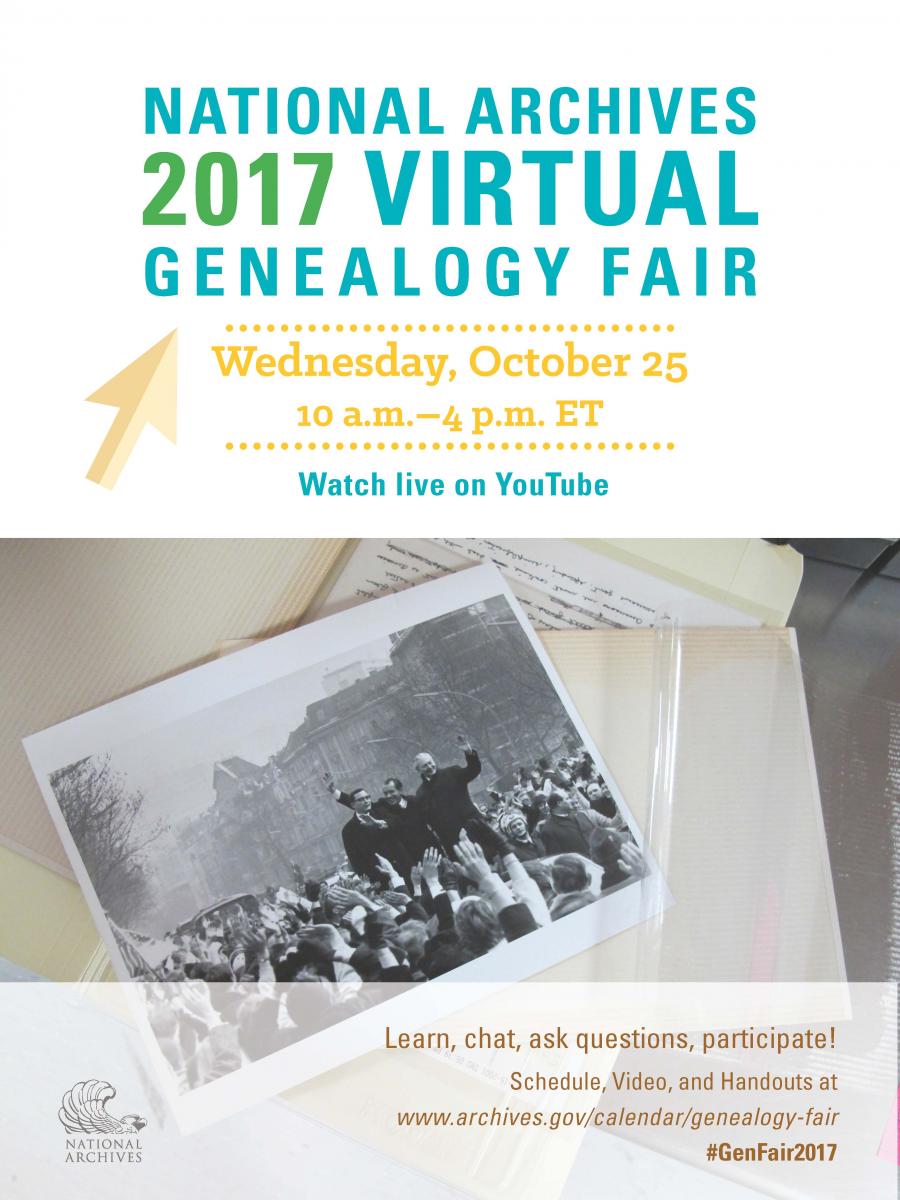 Find an EventOn October 25, 2017, the National Archives hosted the fifth virtual Genealogy Fair via webcast. Viewers participated with the presenters and other family historians during the live event on YouTube. All of the session videos and handouts are available from this web page free of charge. You can watch the sessions and download the materials at your convenience.