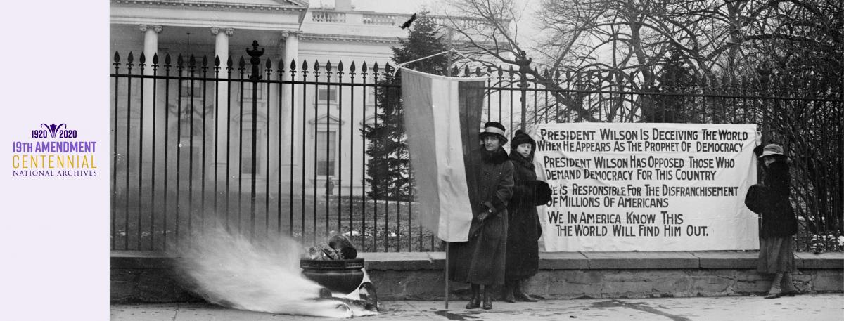 January commemorative calendar page showing Alison Turnbull Hopkins, one of the "Silent Sentinels" who demonstrated outside the White House six days a week for nearly three years. (National Archives Identifier: 594266_