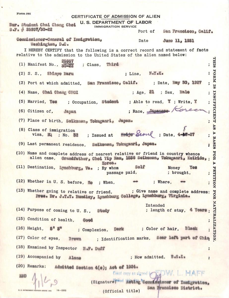 From 1882 to 1943 the United States Government severely curtailed immigration from China to the United States, passing a series of laws whose result was the documentation of international movements of many Chinese nationals.