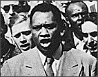 Paul Robeson was all these things and more. He was the son of a former slave, born and raised during a period of segregation, lynching, and open racism. He earned a four-year scholarship to Rutgers University, making him the third African American to attend the school. There he was a member of the prestigious Cap and Skull Honor Society, played four varsity sports (baseball, football, basketball, and track), won speech and debate tournaments, and managed to graduate valedictorian of his class. After graduation, Robeson applied his athletic abilities to a short career in professional football. Aside from his prowess on the gridiron, he earned a law degree and changed the direction of his career. His legal career was cut short, however, after a secretary refused to take dictation from him solely because of the color of his skin. He left law and turned to his childhood love of acting and singing. Robeson starred in Shakespeare's Othello, the musical Showboat, and films such as Jericho and Proud Valley. He was one of the top performers of his time, earning more money than many white entertainers. His concert career spanned the globe: Vienna, Prague, Budapest, Berlin, Paris, Amsterdam, London, Moscow, New York, and Nairobi.