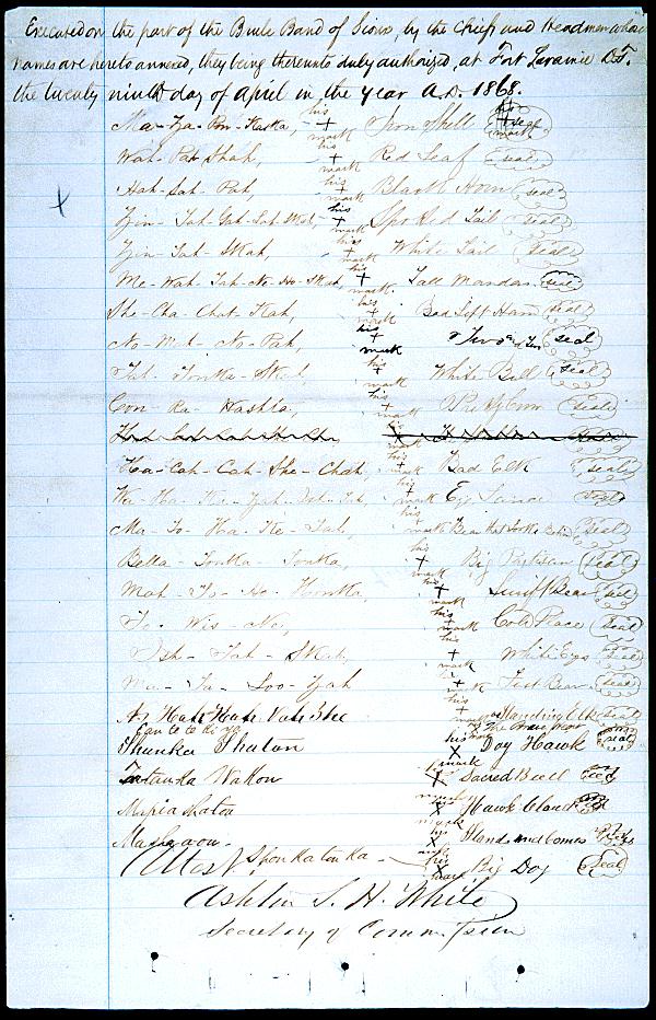 In the spring of 1868 a conference was held at Fort Laramie, in present day Wyoming, that resulted in a treaty with the Sioux. This treaty was to bring peace between the whites and the Sioux who agreed to settle within the Black Hills reservation in the Dakota Territory.