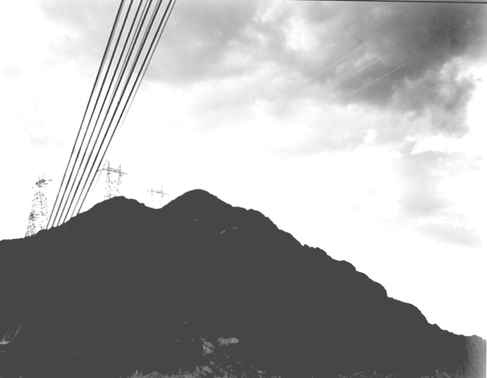 | 519849 | 79-AAB-13 | " Boulder Dam, 1942," vertical, looking toward mountain with transmission lines on peak, close-up of wires. |