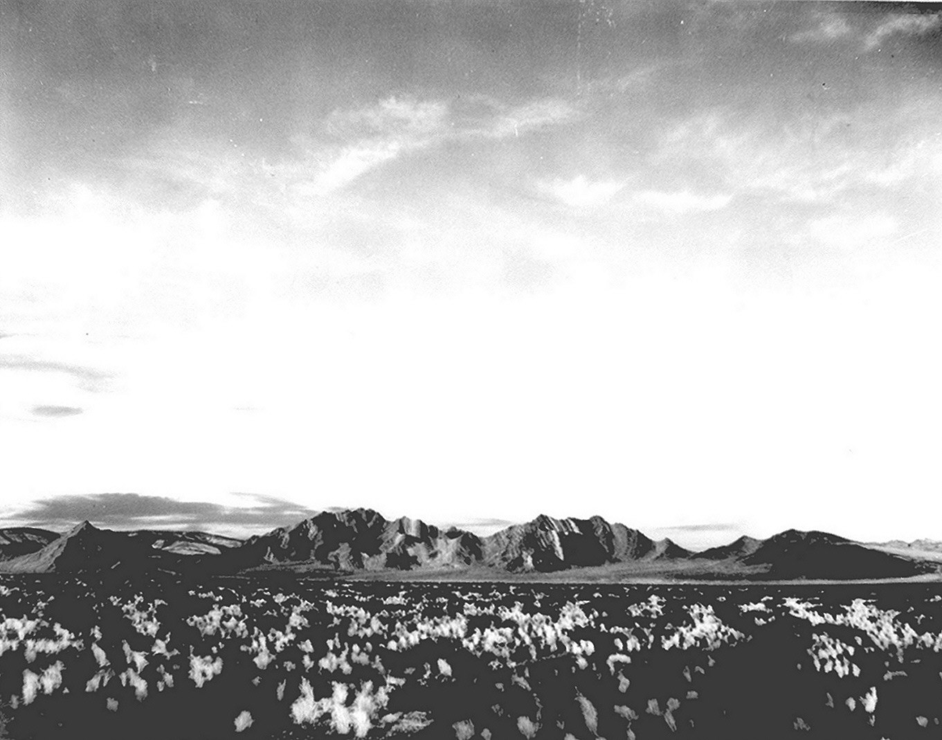 | 519855 | 79-AAD-3 | " Near Death Valley National Monument," more distant view of mountains, desert, shrubs highlighted in foreground. |