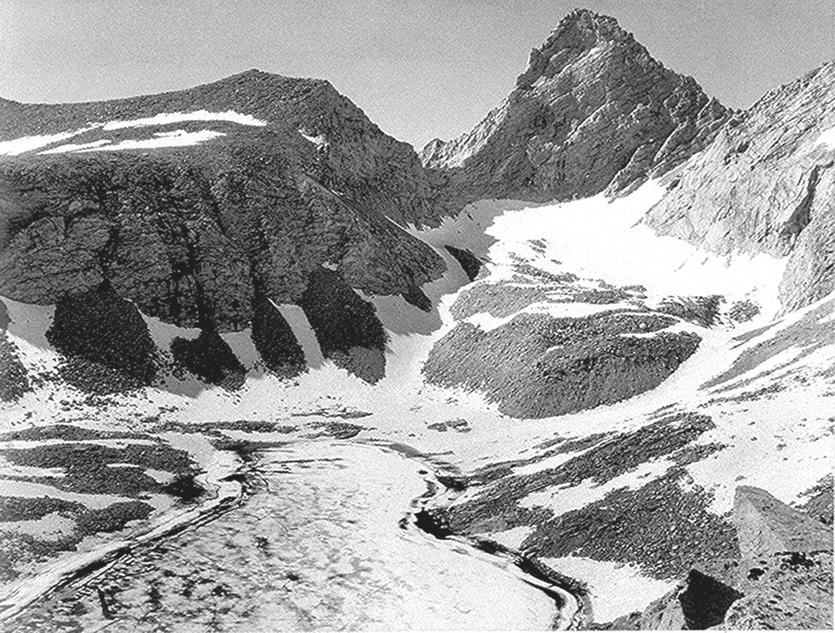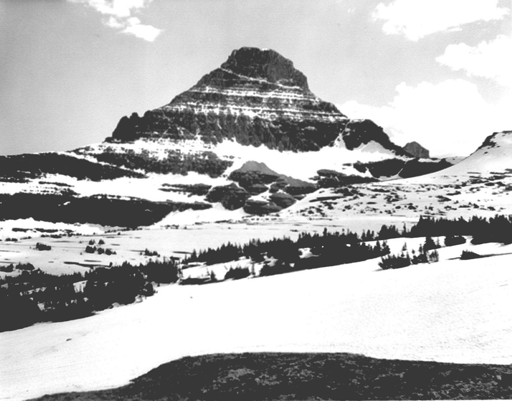 | 519872 | 79-AAE-18 | " In Glacier National Park," vertical, full view of snow covered mountain, including area below timberline. |