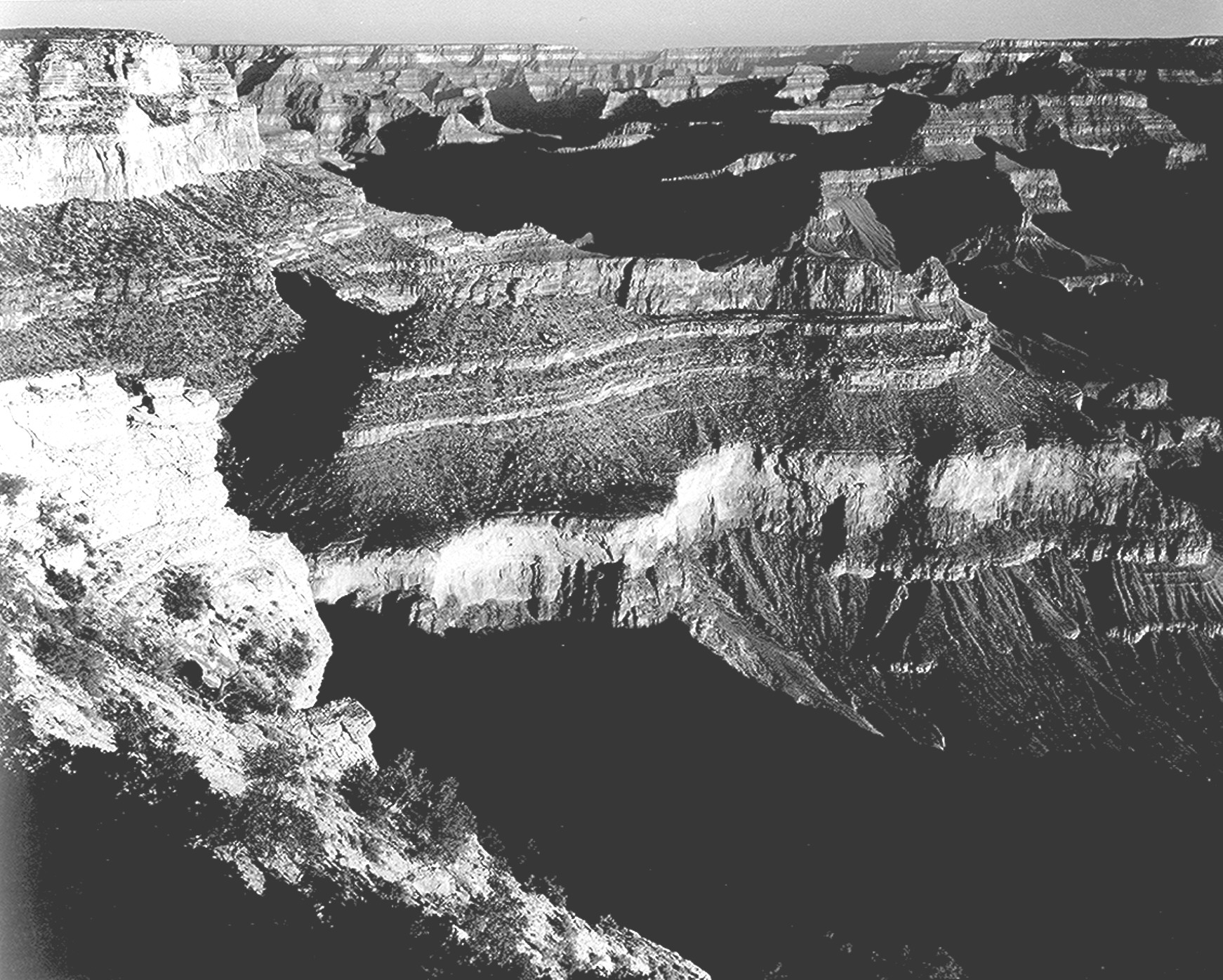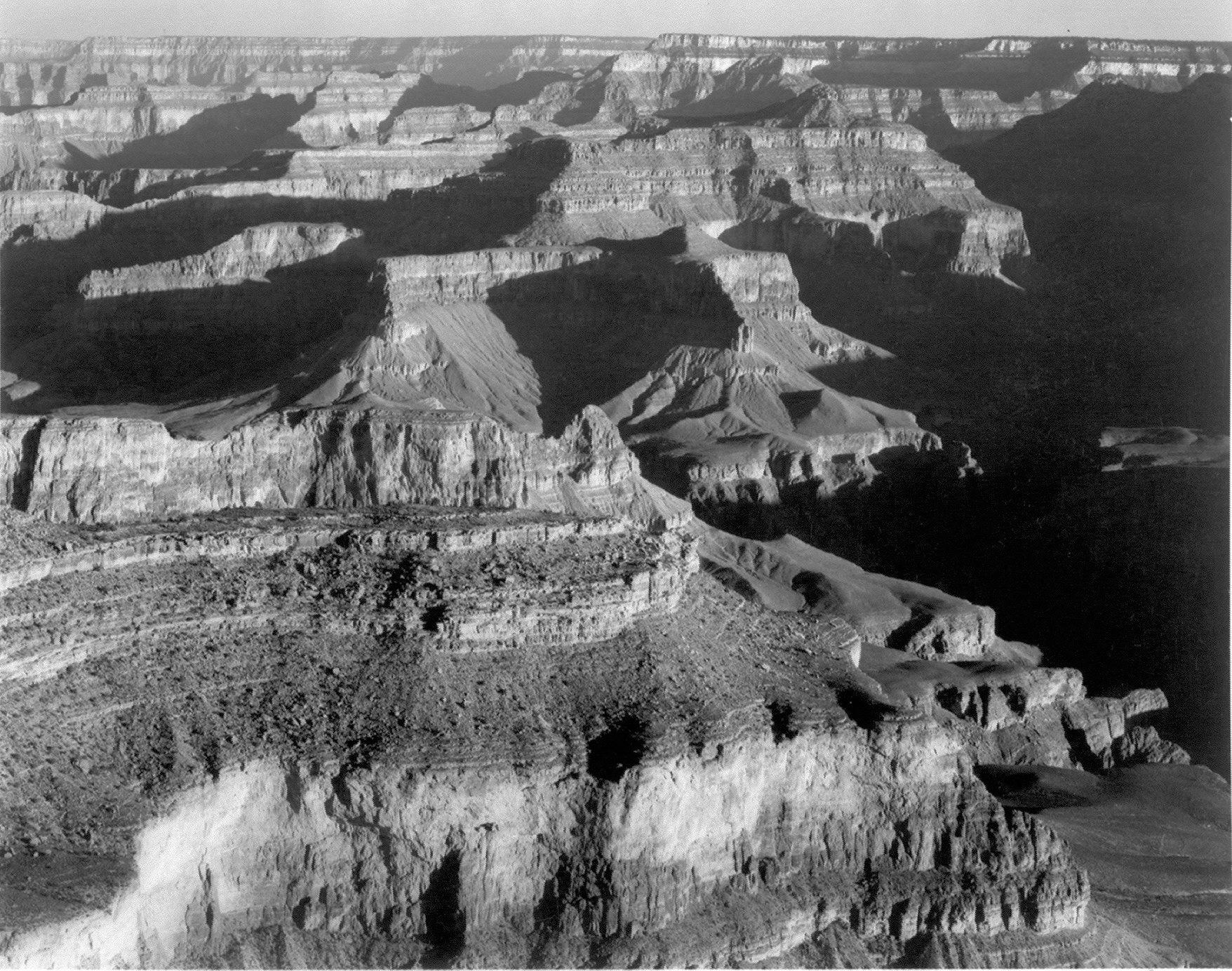 | 519897 | 79-AAF-21 | " Grand Canyon National Park," panorama, dark shadows in foreground and right framing cliffs at left and center. |