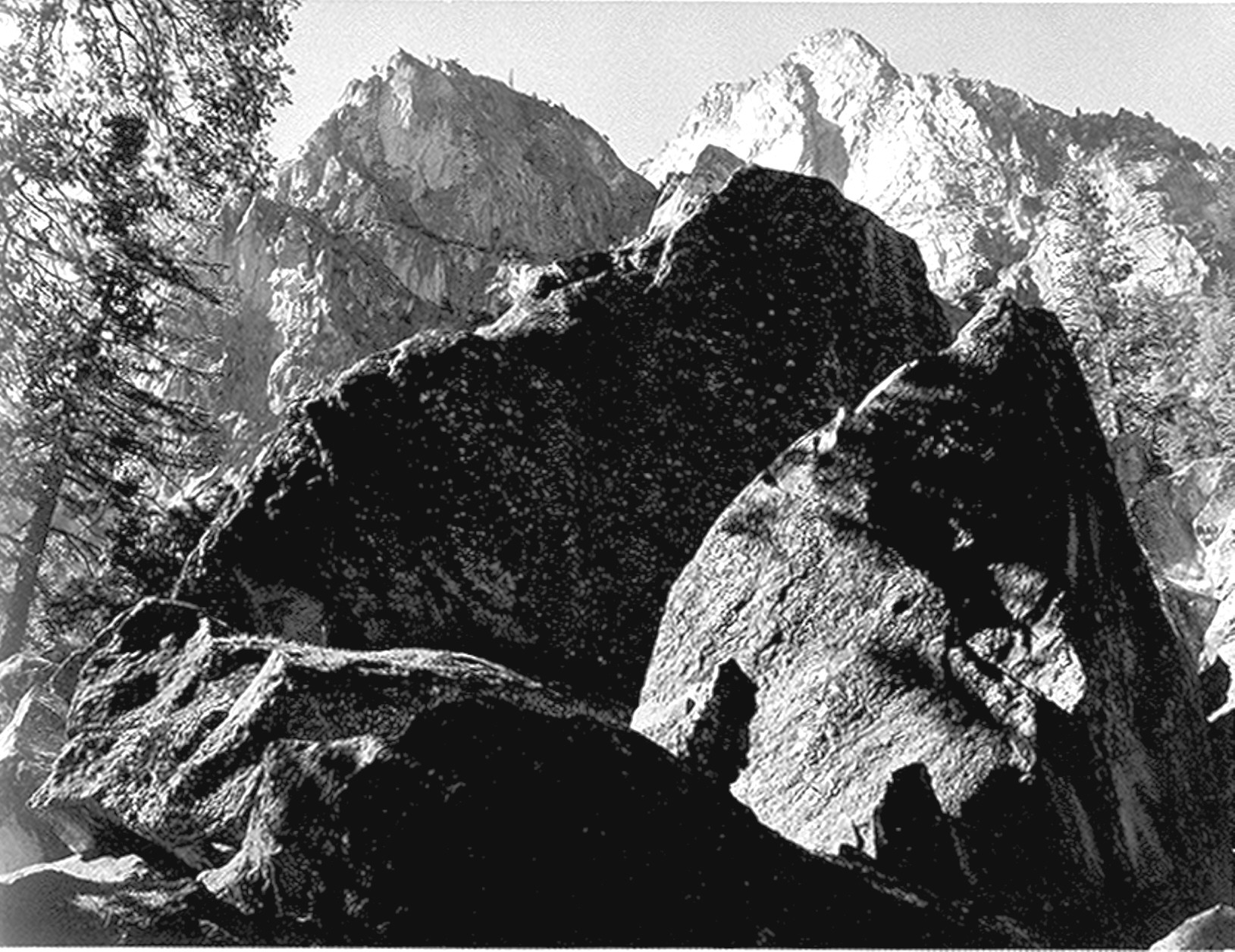 Las fotografías de Kings Canyon se tomaron en 1936 cuando se proponía el establecimiento del parque. Adams agregó estas impresiones al proyecto del mural. La única fotografía de Yosemite (79-AAU-1) fue un regalo de Adams al jefe del Servicio de Parques, Horace Albright, en 1933.