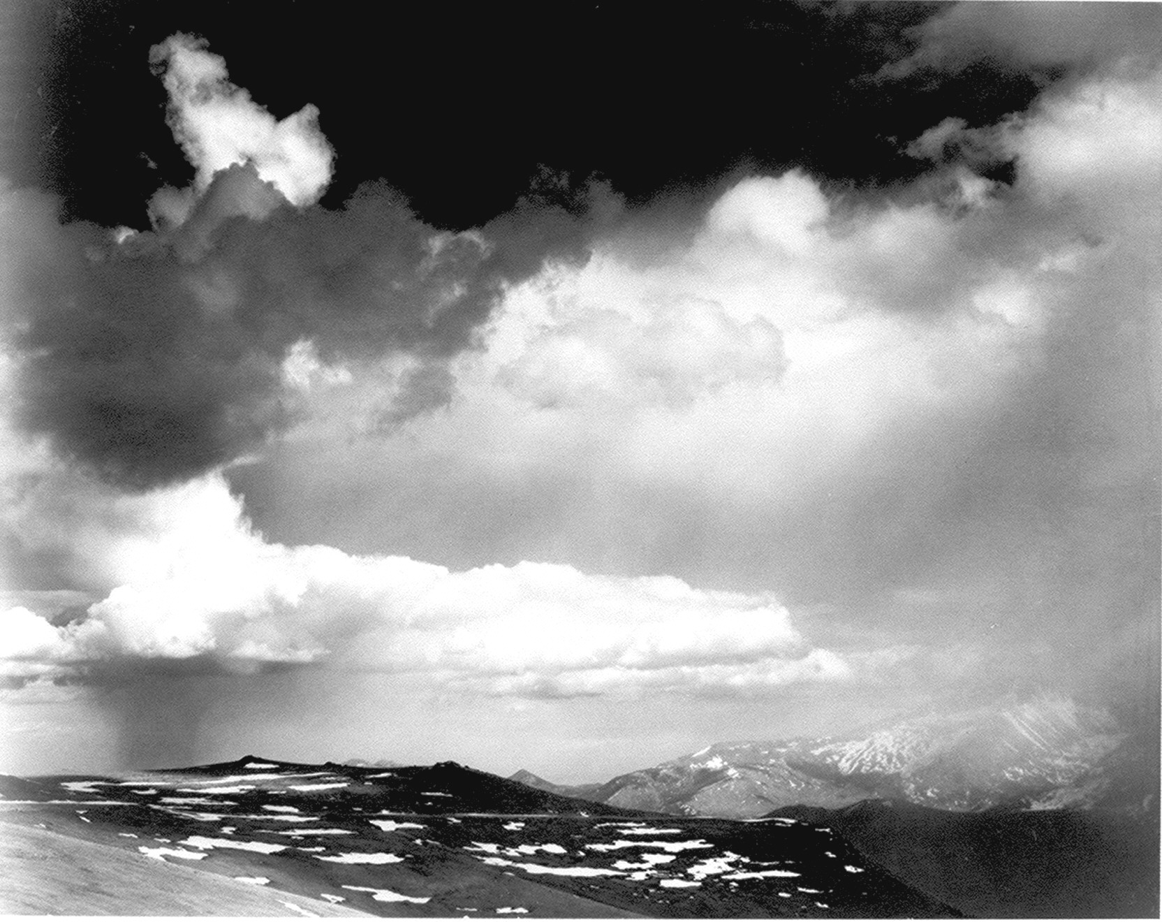 | 519957 | 79-AAM-4 | " In Rocky Mountain National Park," mountain tops, low horizon, dramatic clouded sky. |