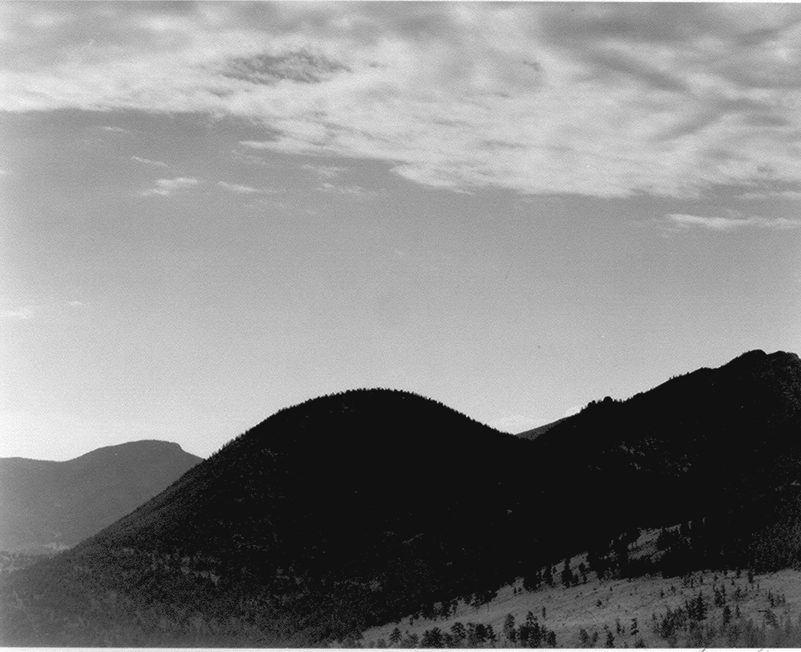 | 519958 | 79-AAM-5 | " In Rocky Mountain National Park," panorama of hill with trees, clouded sky. |