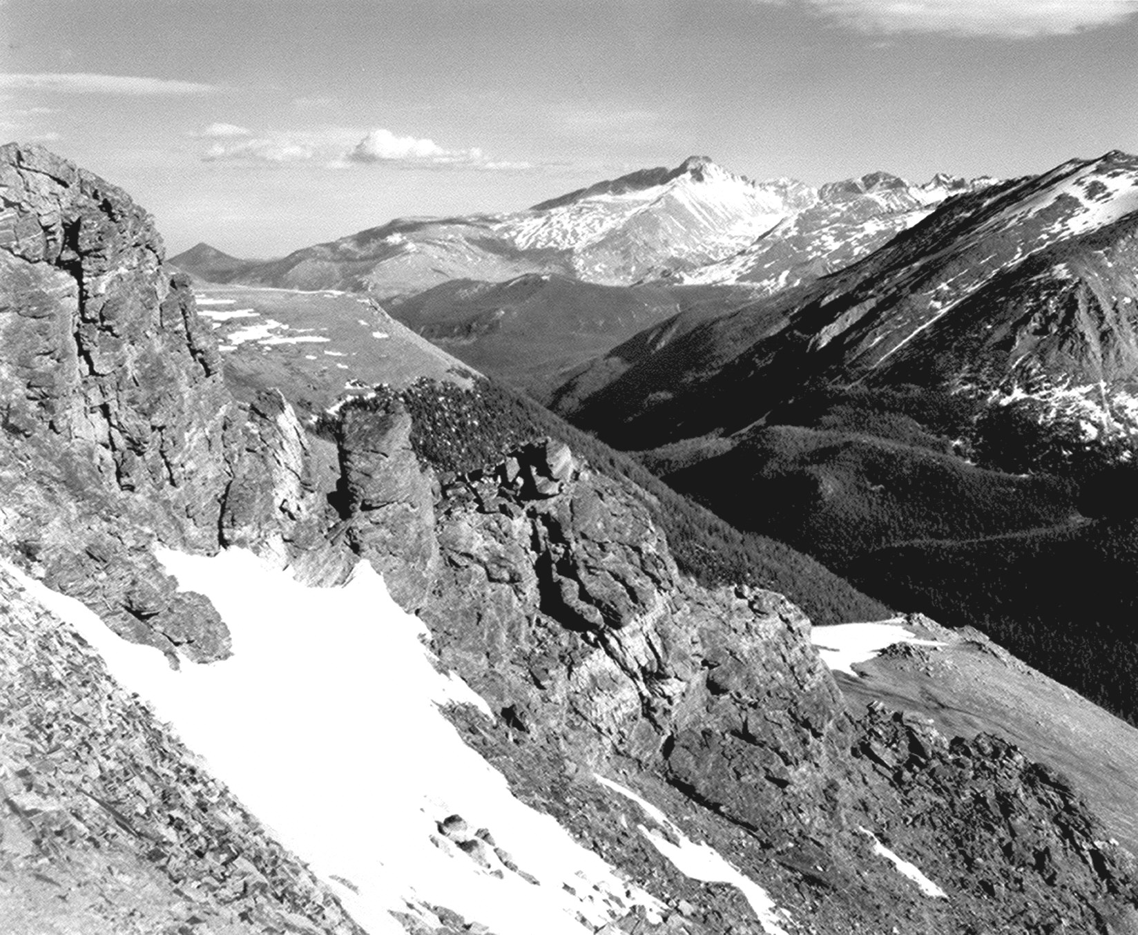 | 519966 | 79-AAM-13 | " Long's Peak, Rocky Mountain National Park," panorama of barren mountains with snow. |