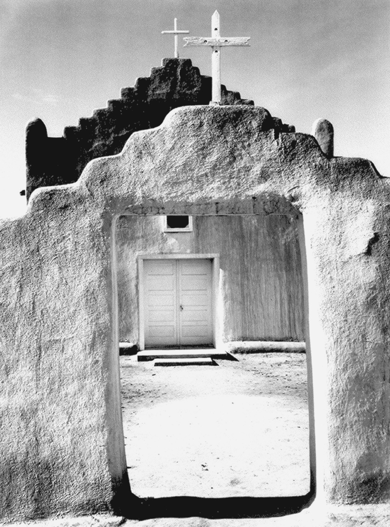 | 519983 | 79-AAQ-1 | " Church, Taos Pueblo, New Mexico, 1942," full front view of entrance. |