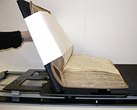 - Para los libros, use un soporte para copias en lugar de un escáner plano. Use soportes de libros, un calzo, o un sostén para que la encuadernación se abra cómodamente y sin fuerza.