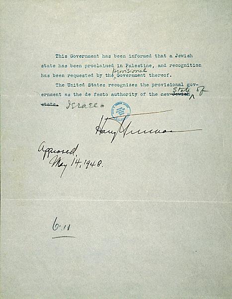 Teaching suggestions related to the U.S. Recognition of Israel are available in the National Archives Digital Classroom.