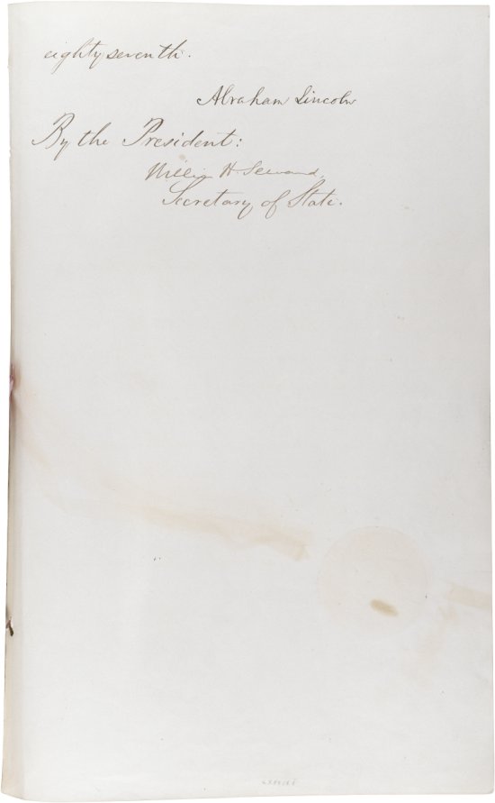 Preliminary Emancipation Proclamation, signature page September 22, 1862