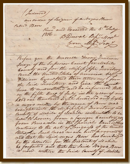 Order of Seizure, U.S. v. Negro Slave Ben, July 5, 1816