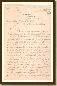 Letter from Frederick Douglass to Secretary of State James G. Blaine, Accepting the Appointment as U.S. Minister to Haiti, June 25, 1889