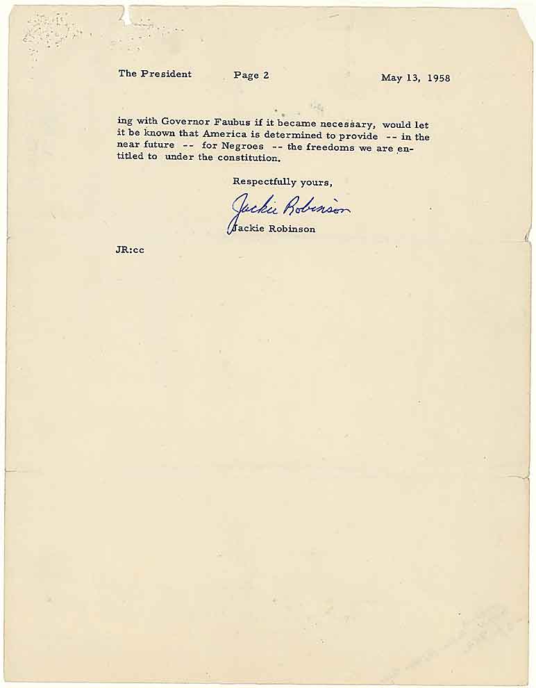 Letter from Jackie Robinson to President Dwight D. Eisenhower, May 13, 1958