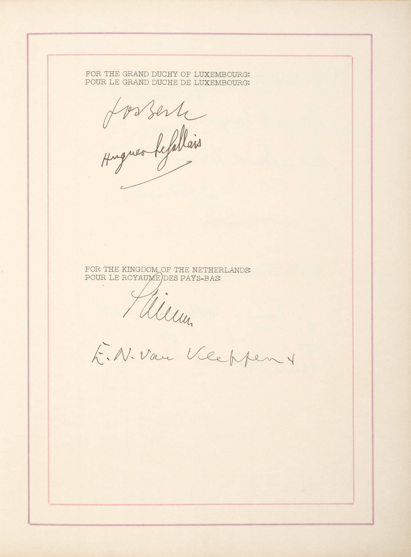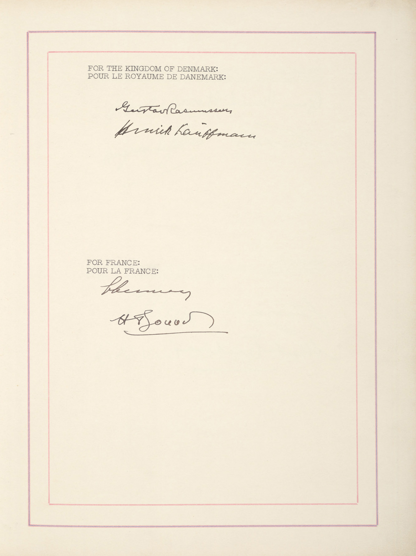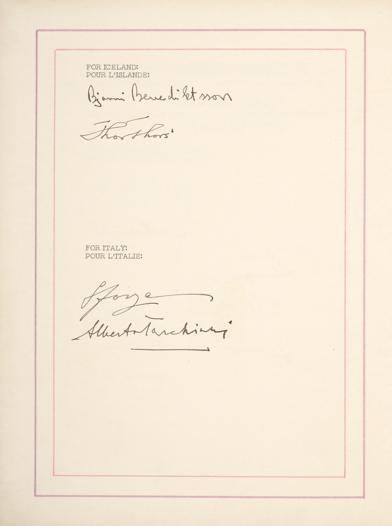 Shown here are the English and French versions of the Preamble and the signature pages.