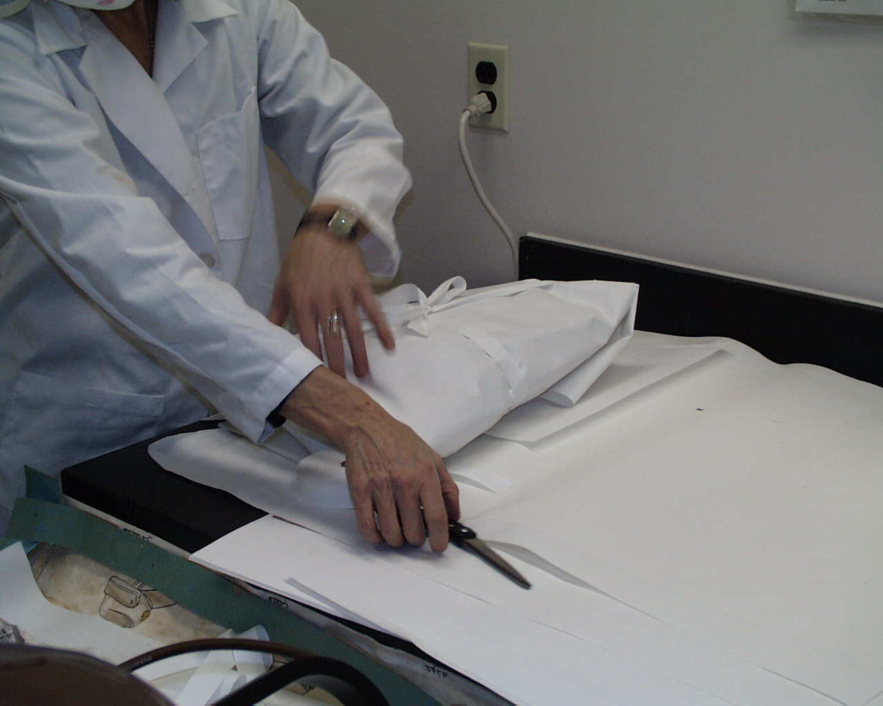 The team unpacked the trunks and assessed and documented the condition of each item.