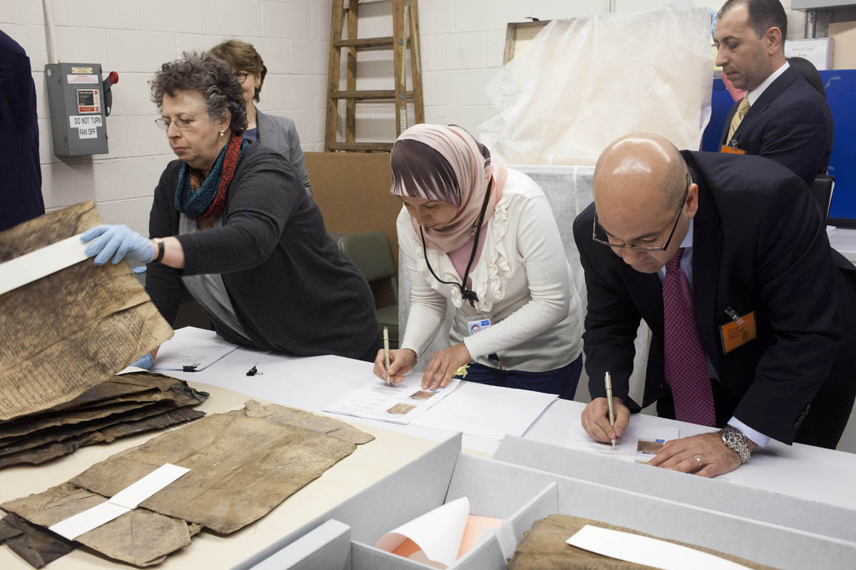 refer to captionEnlargeReviewing parchment fragments to be buried