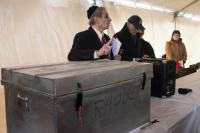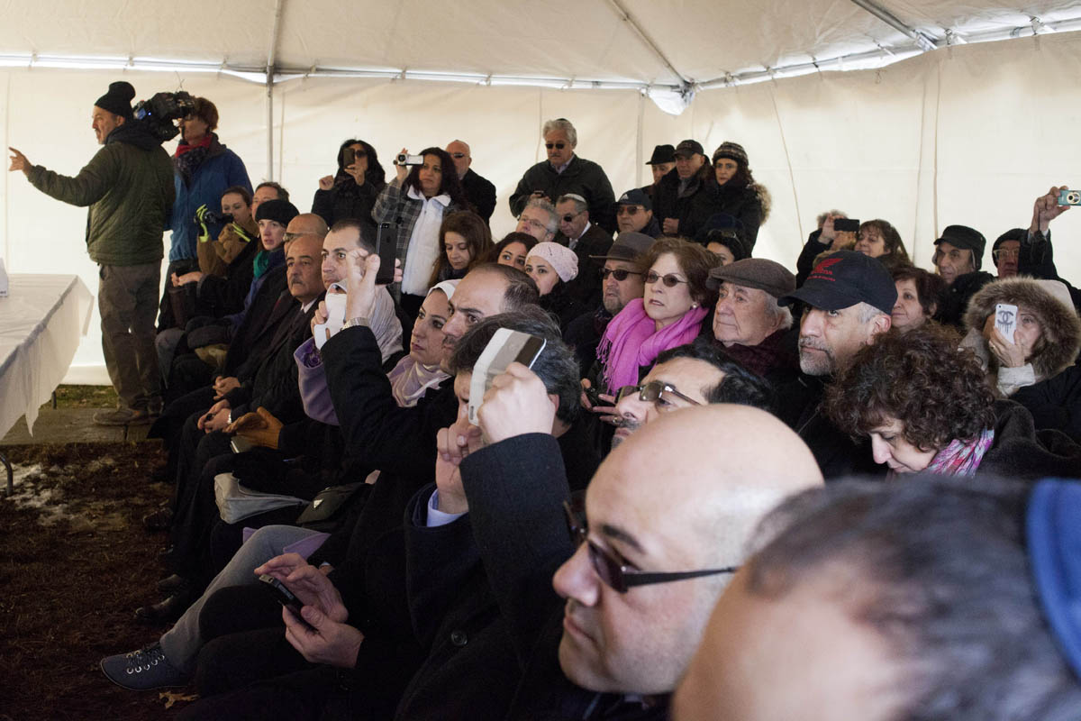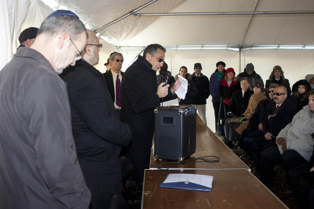At meaningful and emotional ceremony, led by Maurice Shohet, president of WOJI, representatives from all groups with a stake in the Iraqi Jewish Archive gathered together near the gravesite newly dug for the fragments. Also present were the Iraqi ambassador, as well as representatives from the Iraq embassy and Iraqi United Nations Mission, the U.S. Department of State, the National Endowment for the Humanities, and the U.S. National Archives and Records Administration.