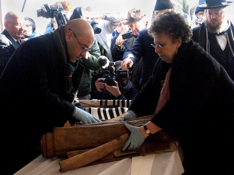 Among the materials floating in water under the Al Mukhabarat building in Baghdad were 50 damaged fragments of Torah and Book of Esther scrolls. These fragments were reviewed by rabbinical authorities on request of the World Organization of Jews (WOJI) from Iraq, and the rabbis determined that the fragments were damaged beyond repair and should be buried according to Jewish tradition.