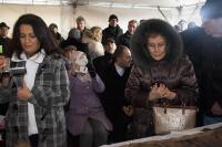 refer to captionEnlargeAttendees viewing parchment fragments before burial
