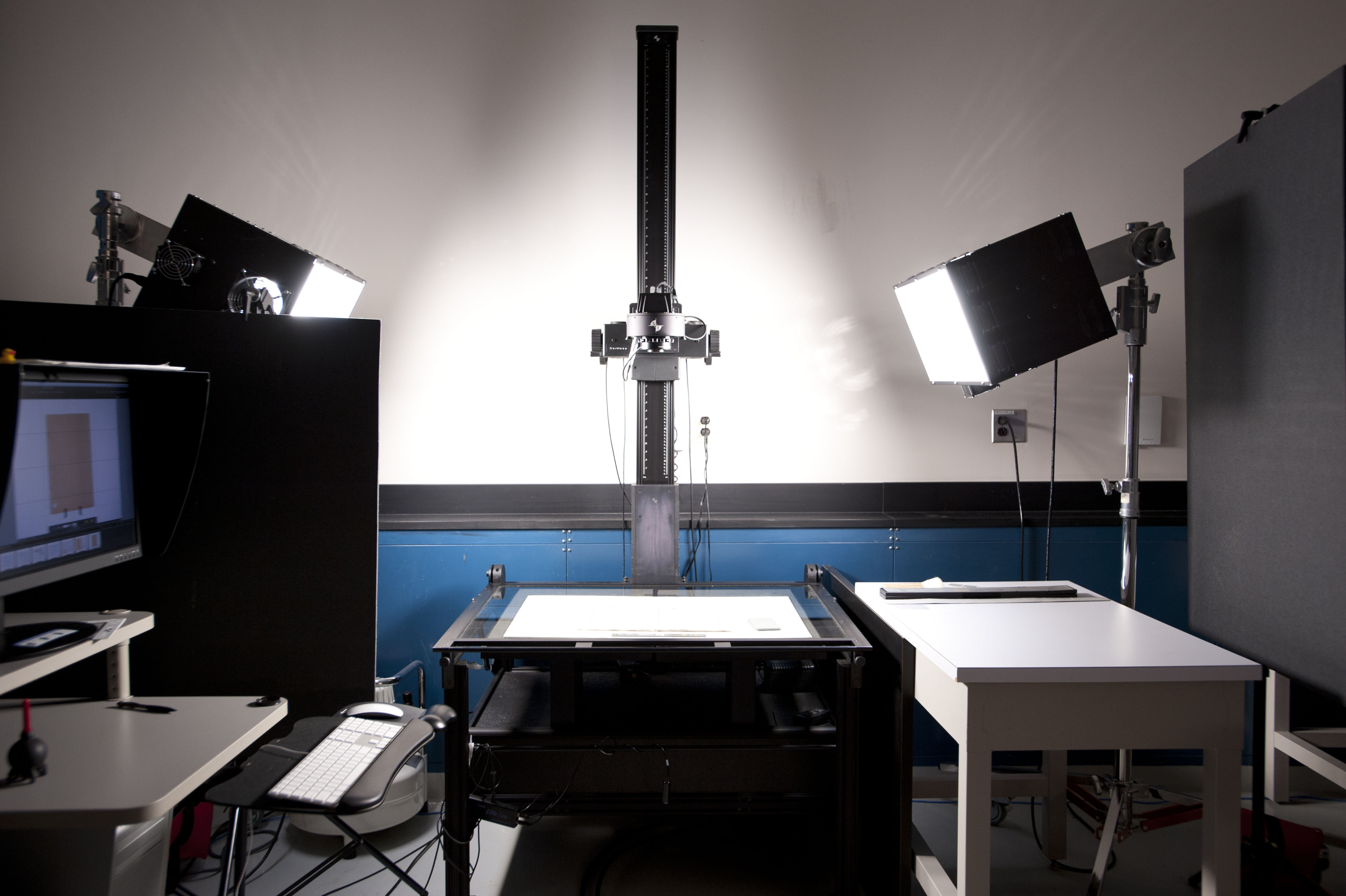 EnlargeImaging equipment includes a camera, lighting, and a computer as well as a heavy-duty copy stand to dampen any vibrations that would affect image sharpness