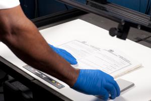 Imaging specialists identify the best shooting approaches; then lab technicians actually take the pictures and assess image quality. After entering in a custody log each item brought into the imaging suite, specialists review the materials to determine the best shooting methods, pass along special instructions, and recommend technical settings. This leg-work saves the technicians’ time and keeps them busy with their primary task, taking pictures.