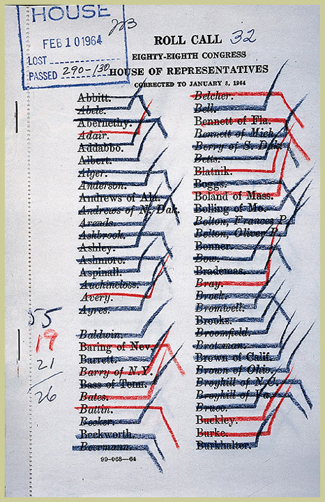 1964 The House considered the Civil Rights bill over a period of 10 days in February 1964, working its way through over 120 amendments offered, many by opponents to passage. On February 10, 1964, the House passed the bill 290 to 130. |