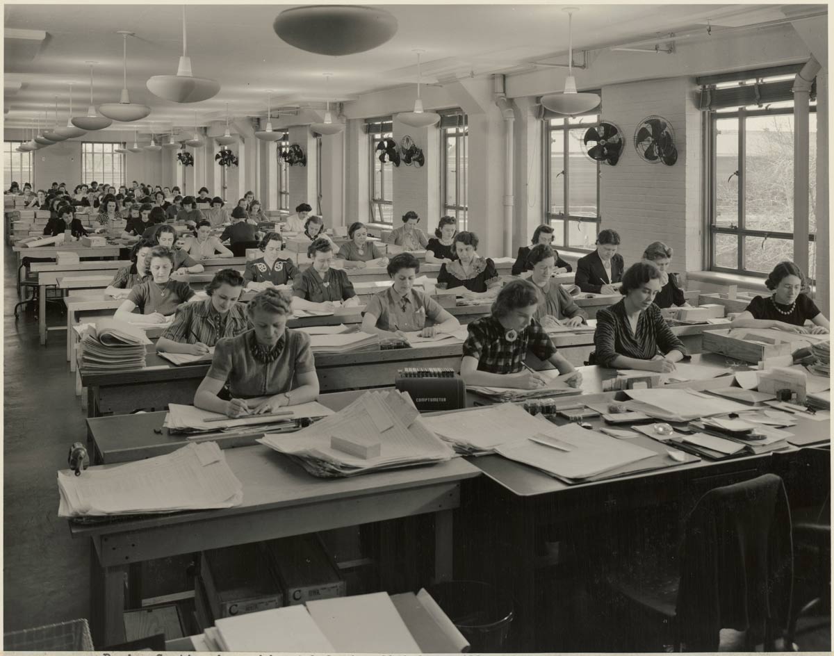 Work and workplaces have gone through enormous transformations between the mid 19th and late 20th centuries. You can view these changes through photographs held by the National Archives and Records Administration.