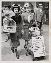 These stylish ladies demonstrated what $1.34 bought in 1918 and 1945, thanks to the Office of Price Control.