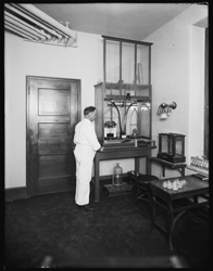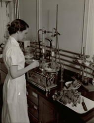 This nutritionist wears lab whites appropriate to the scientific approach of the home economist.