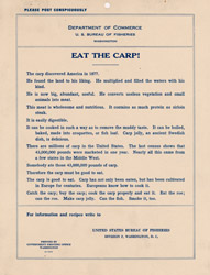 This 1911 Bureau of Fisheries poster encouraged Americans to eat carp. The fish was introduced to American waters in 1877 and quickly proliferated.