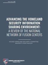 The House Homeland Security Committee released in November 2017, the Majority Staff Report "Advancing the homeland security information sharing environment: A review of the National Network of Fusion Centers"