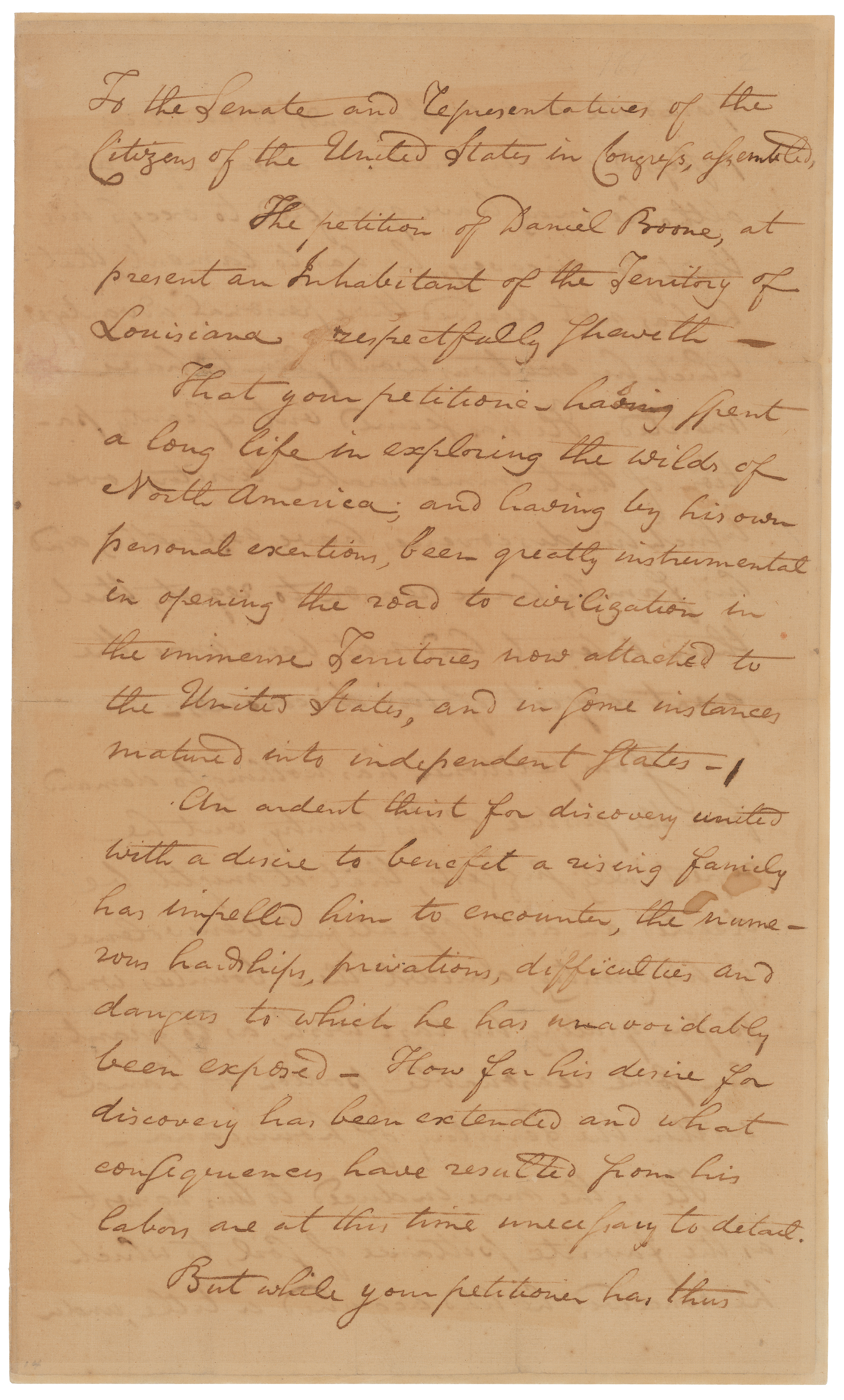 Petition of Daniel Boone praying for a grant of land within the territory of Louisiana, introduced to the Senate on January 2, 1810