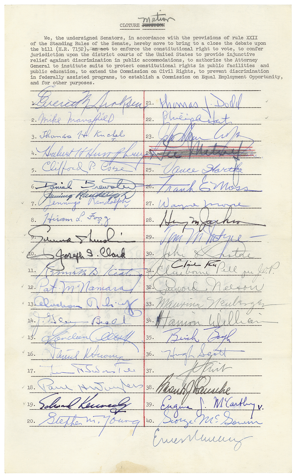 Cloture Motion for the Civil Rights Act of 1964, June 10, 1964