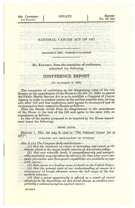 Conference Report on the National Cancer Act of 1971, December 8, 1971
