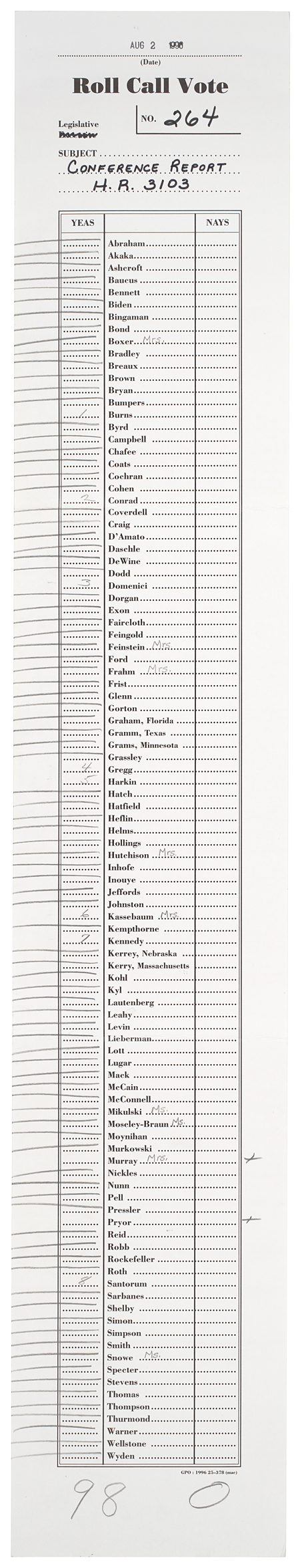 Senate Roll Call for the Health Insurance Portability and Accountability Act, August 2, 1996