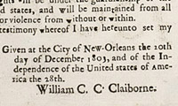 Governor William C. C. Claiborne's Address to the Citizens of Louisiana, December 20, 1803