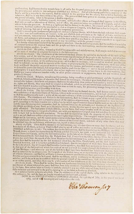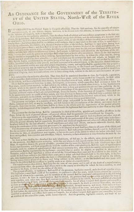 Ohio celebrated its 200th Anniversary of statehood on March 1, 2003. The history of Ohio statehood, however, begins much earlier. One of the provisions in the Paris Peace Treaty ending the Revolutionary War was the establishment of boundaries that would allow for American expansion westward. This area became known as the Northwest Territory. In 1787, Congress passed the Northwest Ordinance to establish a government for the territory and to provide a method for admitting new states into the Union once the population had reached 60,000 inhabitants.