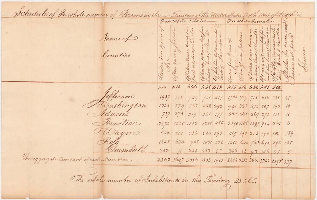 In December 1801, the "Schedule of the Whole Number of Persons in the Territory North West of the Ohio" was transmitted to Congress accompanying a presidential message. The schedule shows that the population of the territory northwest of the Ohio River had expanded to 45,000 inhabitants. Although this number was less than the population requirement of the Northwest Ordinance, statehood supporters argued the population would soon reach 60,000. The House referred the census schedule to a select committee, "with instructions to report whether any, and what, measures ought, at this time, to be taken for enabling the People of the said territory to form a State Government for themselves, to be admitted into the Union upon the same terms with the original States."