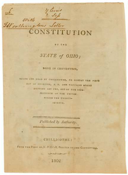 The House Committee reported a bill enabling Ohio to form a constitution and state government and on April 9, 1802 the bill passed the House. After some changes in conference committee, the bill passed the Senate and was signed into law on April 30, 1802. In November 1802, the people in the eastern division of the Northwest Territory met to form a constitution and state government. The Ohio constitution was adopted on November 29, 1802, and it, along with a letter from Agent Thomas Worthington and the Address of the Convention, was sent to Congress as qualification for statehood.