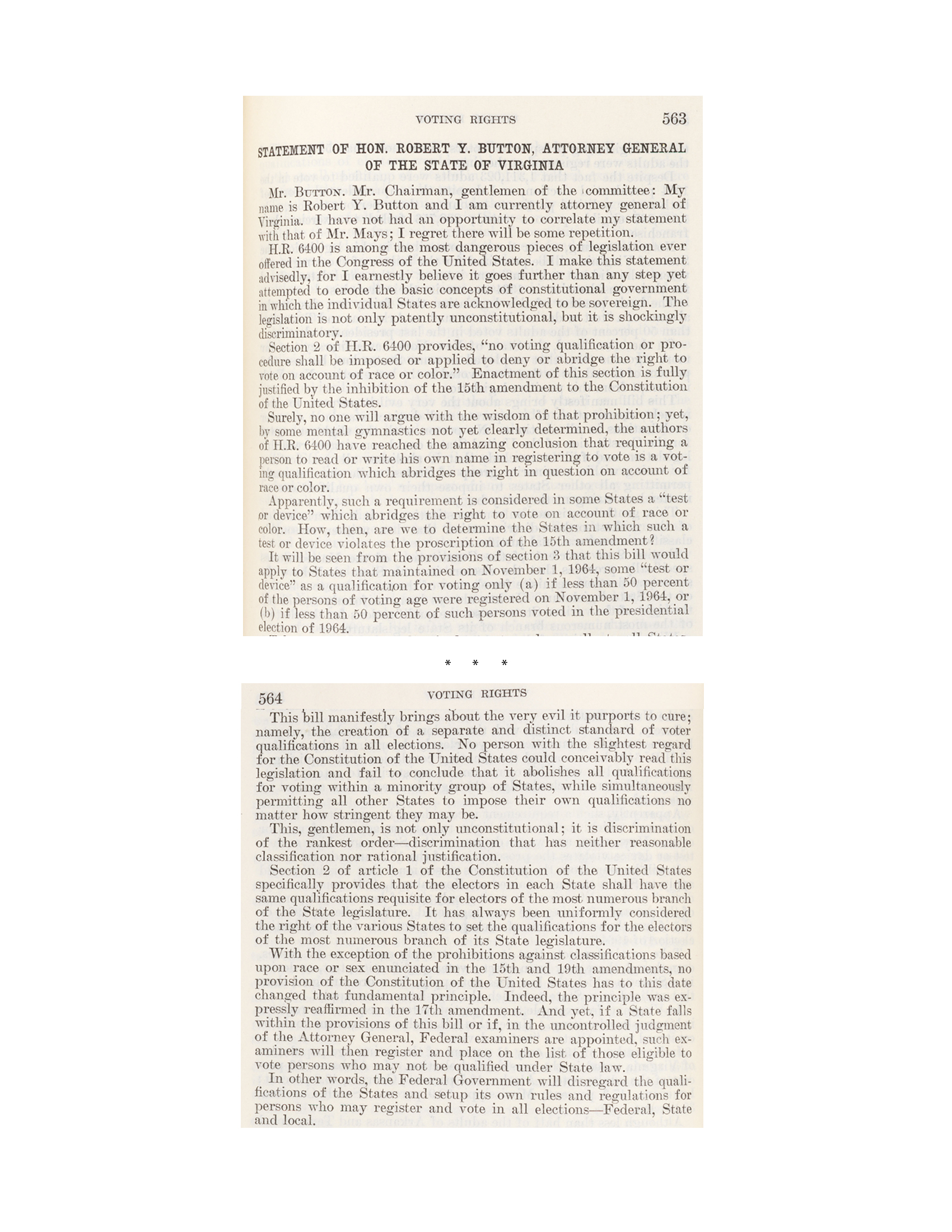 Statement of Hon. Robert Y. Button, Attorney General of the State of Virginia, March 29, 1965; 89th Congress; Washington: Government Printing Office, 1965. Document 2B