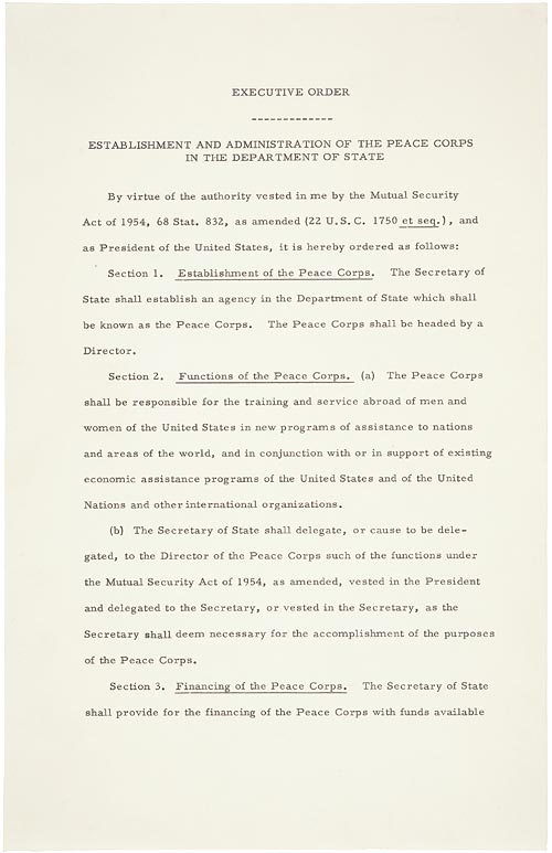 Executive Order 10924: Establishment of the Peace Corps. (1961)
