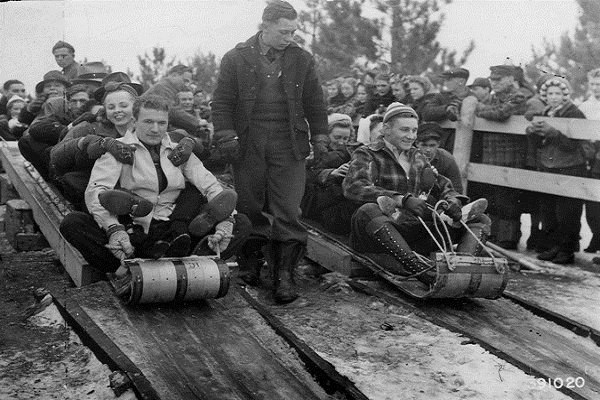 Photograph of Two Toboggans Starting Down the Slide at Silver Valley Winter Sports Area | RG 95 | Series: Historic Photographs, ca. 1880 - ca. 1970 | NAID 2128507