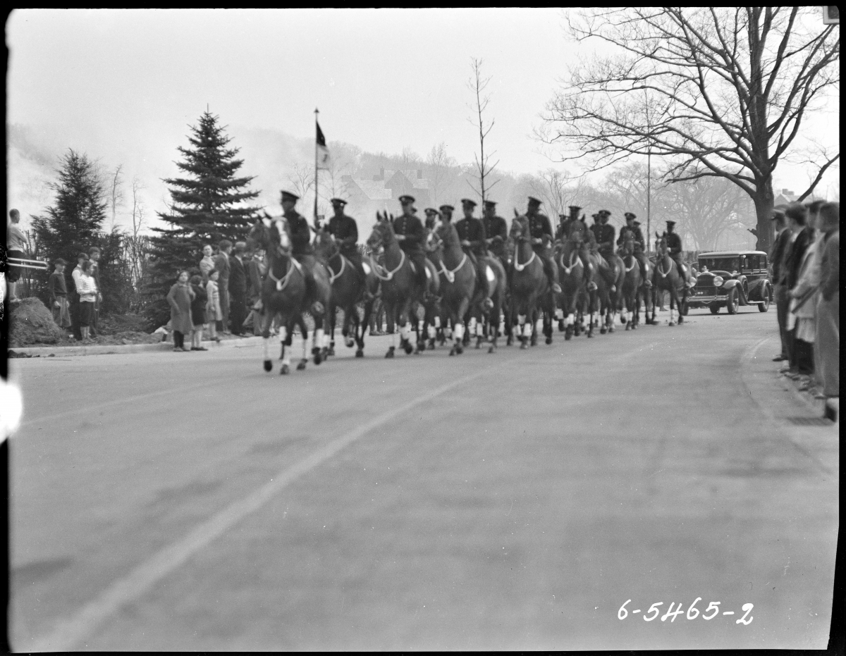 Buffalo Soldiers ride at an unidentified ceremony at the U.S. Military Academy. [NAID 239940433; view in Catalog]