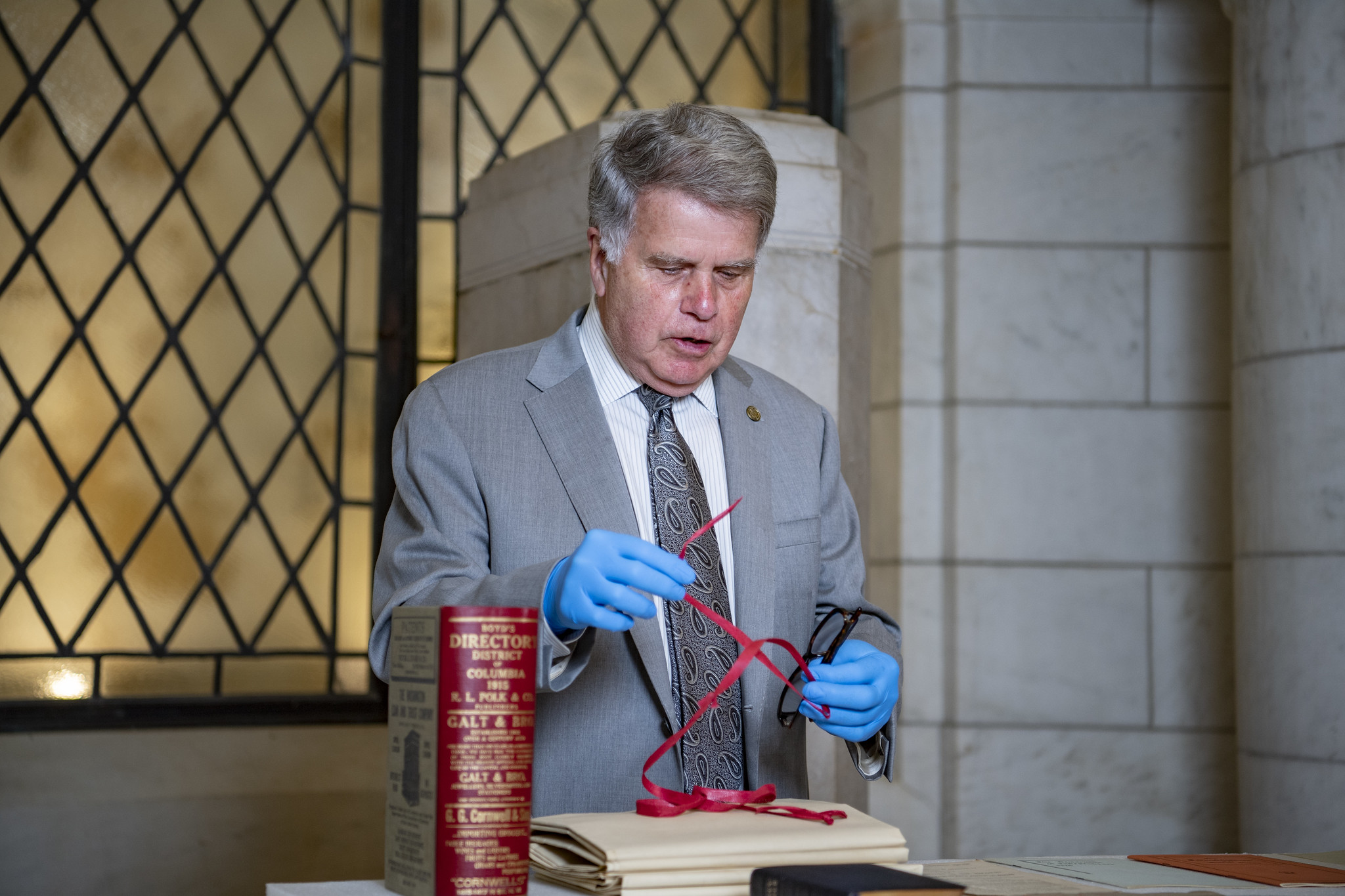 “One of my favorite things I was so excited to see is this wonderful example of red tape,” he said. “All of the records in the National Archives, when they were moved into that building, were carefully protected with wrappings that were held together with this red tape. This is where the saying comes (from) about cutting through the red tape. It is actually—literally—the red tape.”