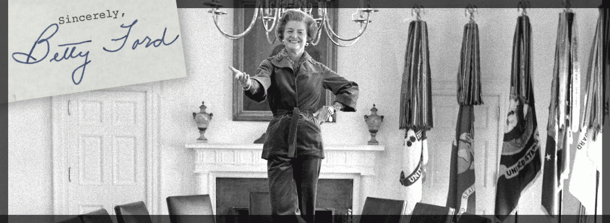 WASHINGTON, April 5, 2018 — The National Archives will open a special exhibit this week dedicated to former First Lady Elizabeth Anne “Betty” Ford. The exhibit will include rarely seen objects, documents, and photographs that highlight Betty Ford’s courage and candor when speaking publicly about her own personal battle with breast cancer.