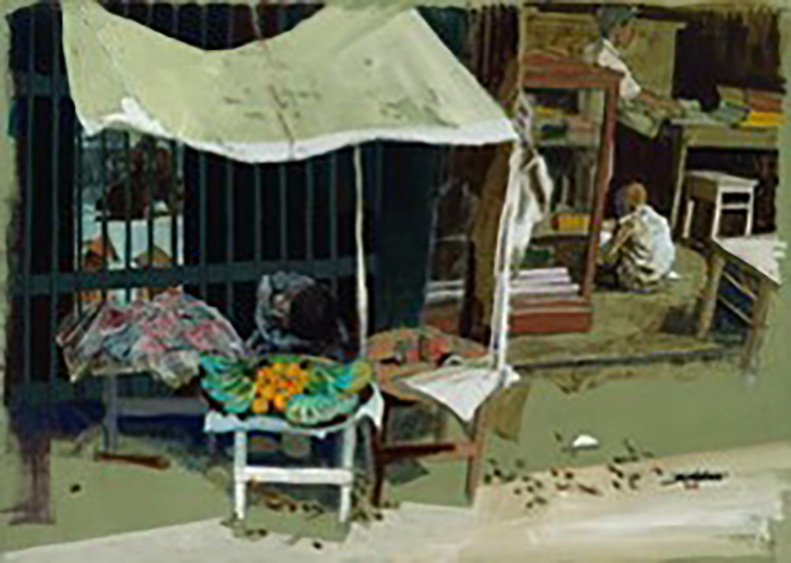 Jim Butcher, also a Marine combat artist, added, “It’s someone’s impression. A photograph is a slice of time, an instant. I think art can span time with an impression of an idea rather than a slice of time.”