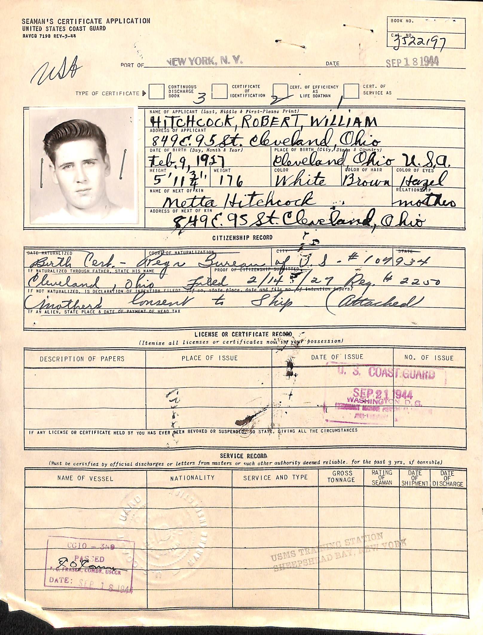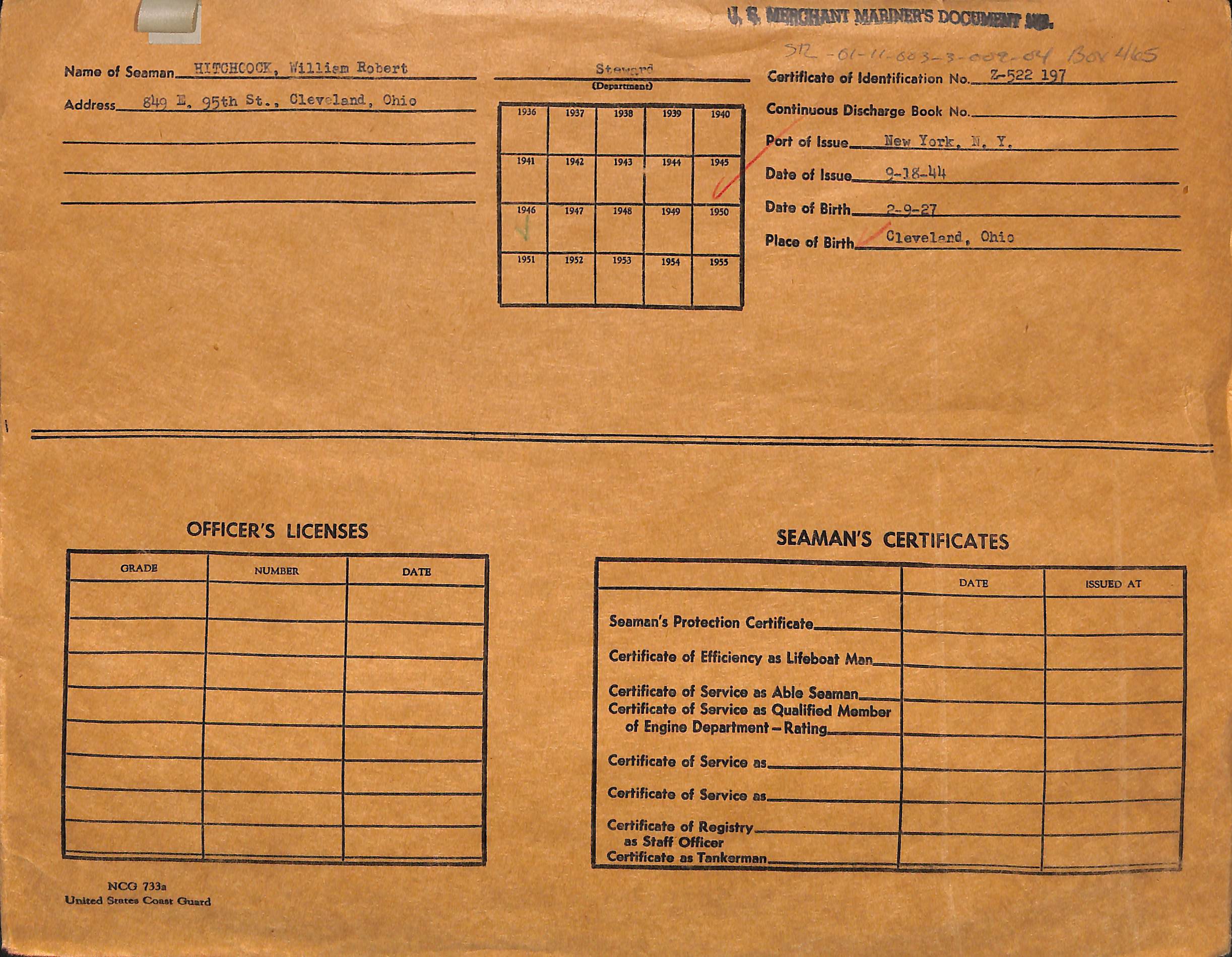 These pre-1967 records, from Record Group 26, Records of the U.S. Coast Guard, Merchant Marine Personnel and Licensing Records, contain a wealth of information. Most notably they contain rich genealogical history, photographs, and artifacts such as ID cards or log books that relay information from their journey over the seas.